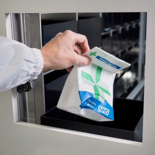 Kunden indtaster koden i dispenseren og henter sin medicin døgnet rundt
